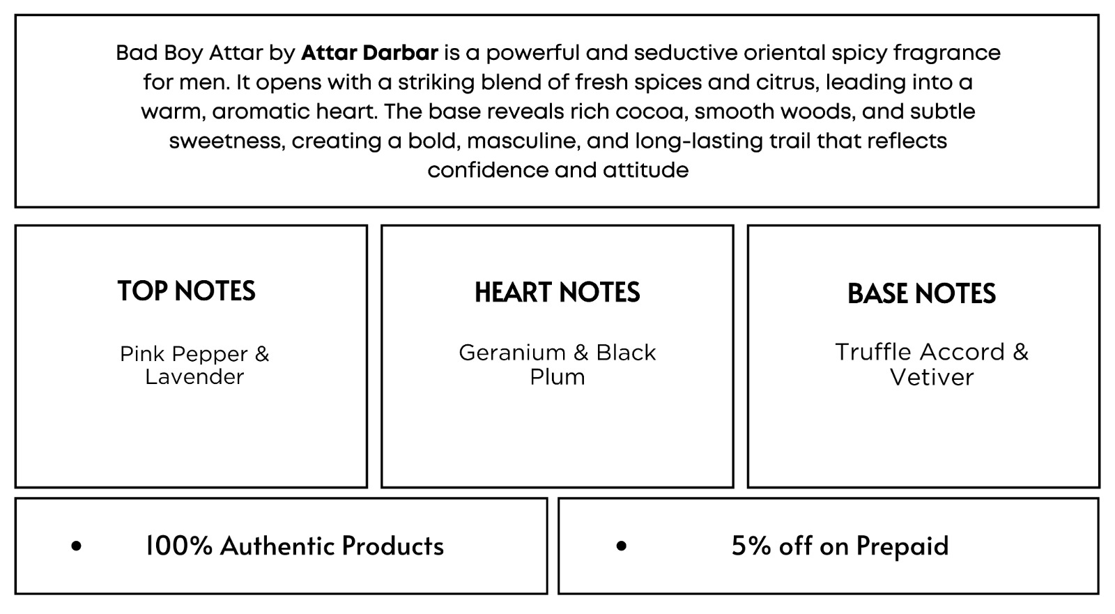 Bad Boy Attar by Attar Darbar – Confidence in Every Drop