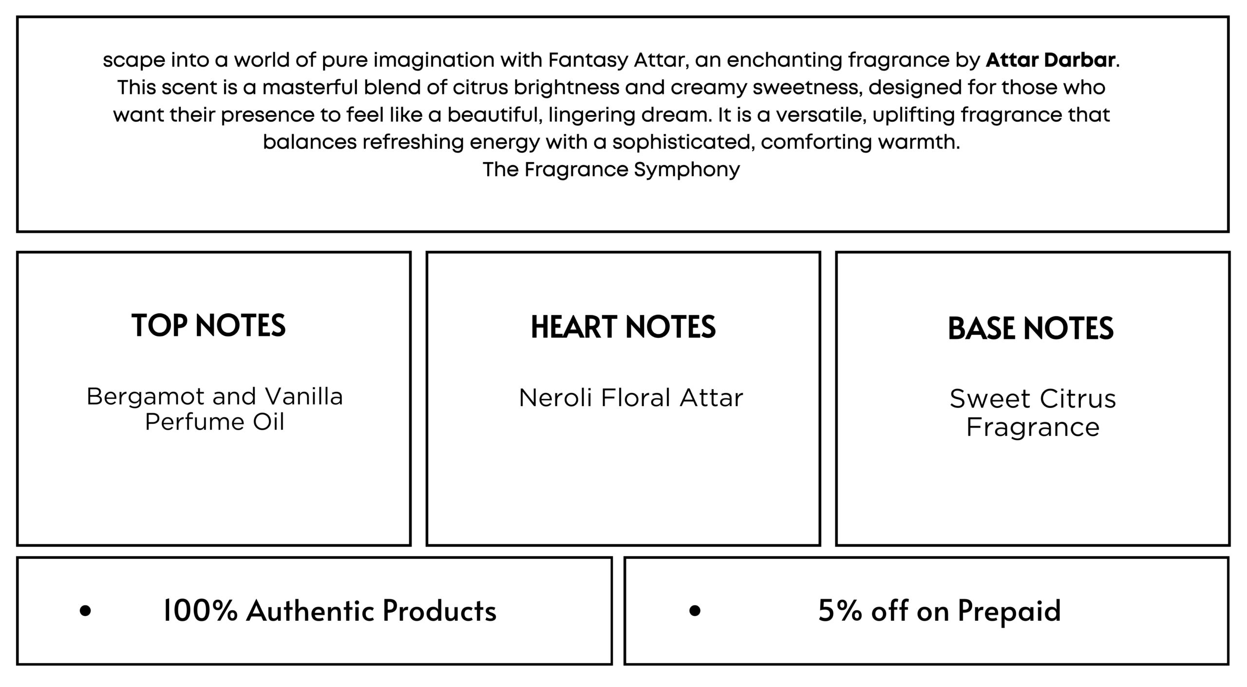 Escape into a world of pure imagination with Fantasy Attar, an enchanting fragrance by Attar Darbar. This scent is a masterful blend of citrus brightness and creamy sweetness, designed for those who want their presence to feel like a beautiful, lingering dream. It is a versatile, uplifting fragrance that balances refreshing energy with a sophisticated, comforting warmth.