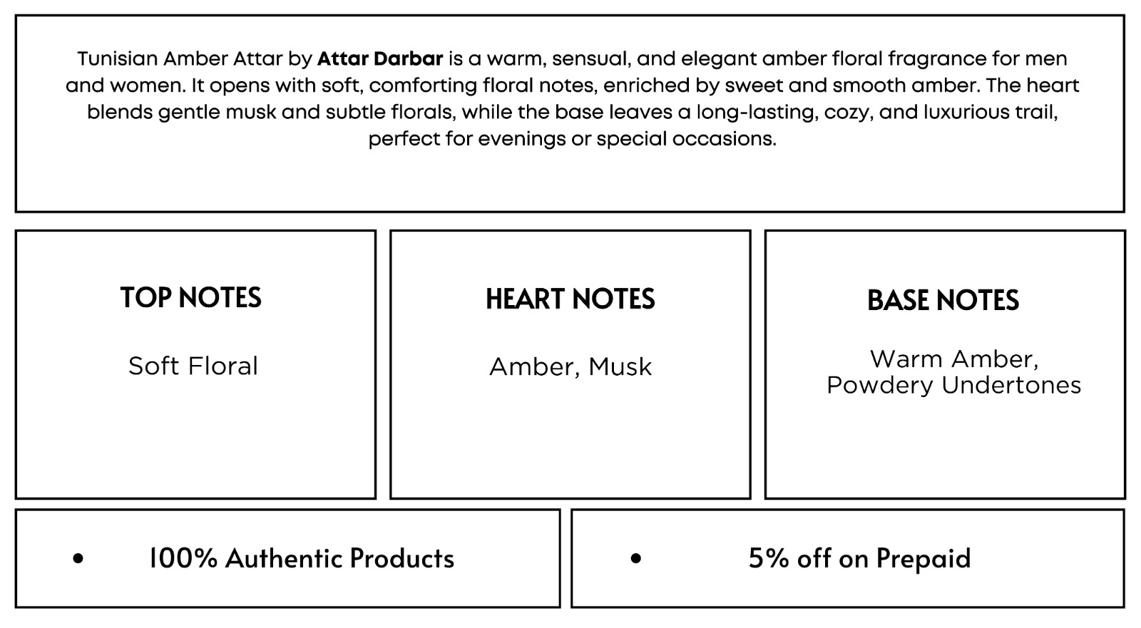 Tunisian Amber Attar by Attar Darbar is a refined amber floral fragrance crafted for both men and women who appreciate warmth, elegance, and sophistication. This luxurious scent opens with delicate soft floral notes that create a smooth and comforting introduction. The gentle floral accord immediately sets a graceful tone, making the fragrance inviting yet understated.