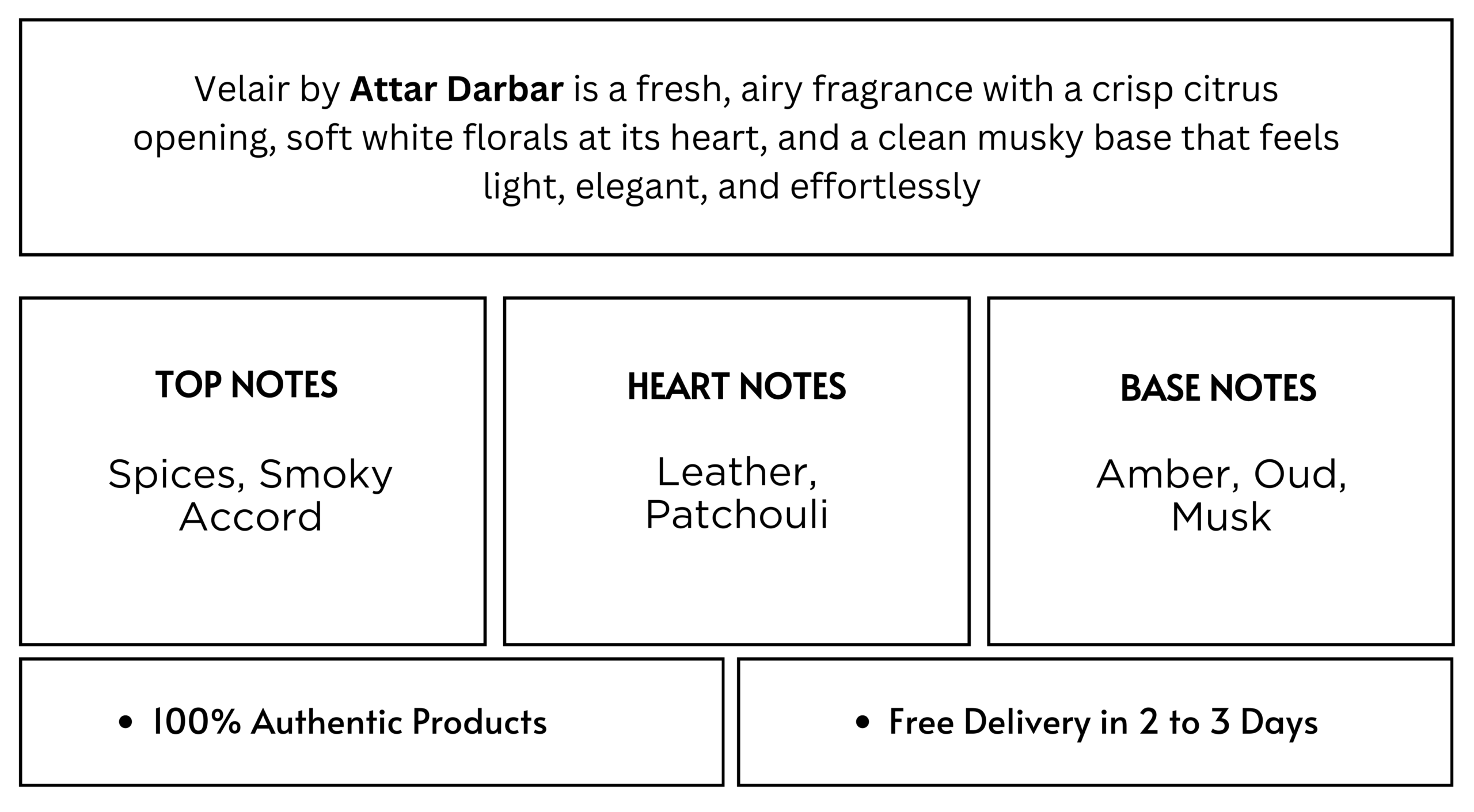 Velair by Attar Darbar is a fresh, airy fragrance with a crisp citrus opening, soft white florals at its heart, and a clean musky base that feels light, elegant, and effortlessly refreshing.